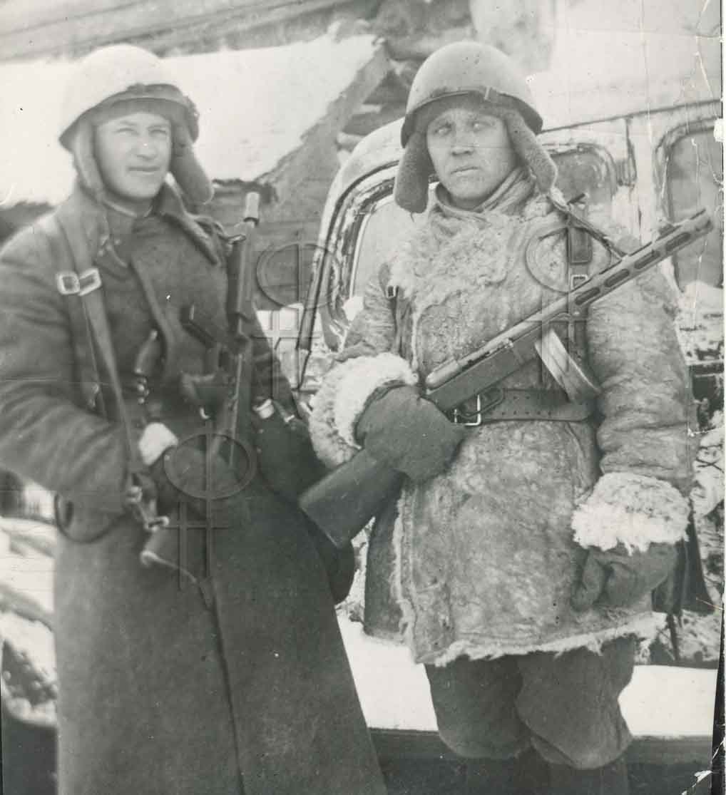 Старший лейтенант с ППТ, похоже, что зима 1942-43 годов: А вот не совсем понятные бойцы с упрощенной версией Томпсона М1: "Довоенные" Томпсоны были закуплены в США летом-осенью 1941 года, еще до начала программы ленд-лиза. Возможно, что таких закупок было больше одной - довольно много встречается фотографий с "неупрощенными" ППТ. А вот М1 - абсолютно точно пришли по программе Ленд-лиза. |