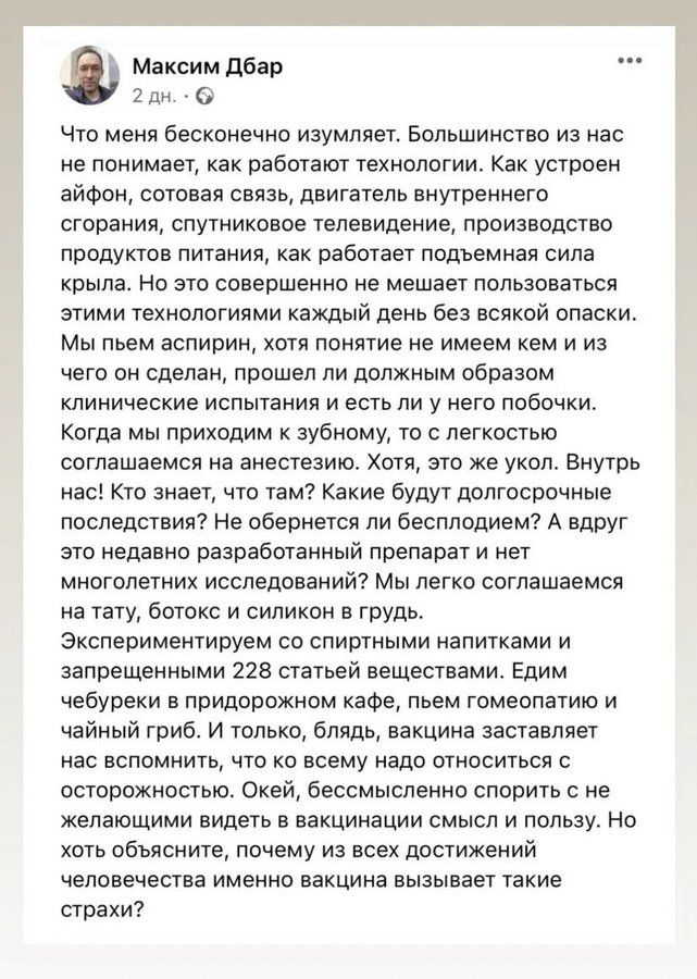 1. Японское "чудо", ИМХО, имеет очень простое объяснение: ...на 29.12.21 Япония тестов на 1 млн. 232 502 ...на 29.12.21 Россия тестов на 1 млн. 1 636 676 В Африке, где "никто не болеет Ковидом": ...на 29.12.21 Мозамбик тестов на 1 млн. 32 781 2. По "вспышке Ковида" на авианосце с привитыми моряками умалчивается о серьёзности этой вспышки. Есть некоторая разница в ситуациях, когда "две трети экипажа лежат пластом, и только немногие самые стойкие на двухсменке из последних сил пытаются довести корабль до берега" и "каждую неделю несколько человек температурят по два-три дня". ЧСХ, боевой поход будет прерван и в том, и в другом случае 3. Аналогично данные о "заболевших" никакой внятной информации не дают без расклада на хотя бы "бессимптомных", "легко переболевших" и "тяжело переболевших" ЗЫ Рад за сосайтников, которые перед "Манту" всесторонне изучали химический состав препарата и биохимию взаимодействия его с организмом. И восхищён их мужеством - ведь проба Манту у некоторых вызывает воспаление лимфатических узлов Ж8-0 |