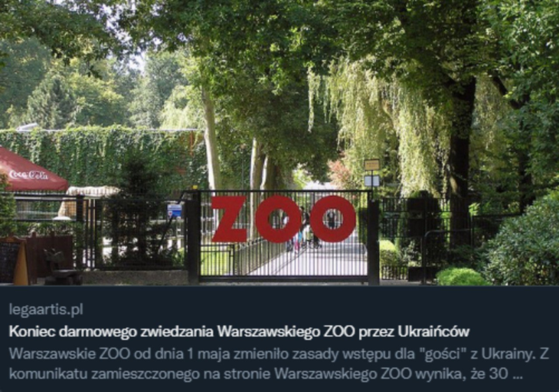 Варшавский зоопарк ( ZOO !) отменил бесплатный вход для украинцев.