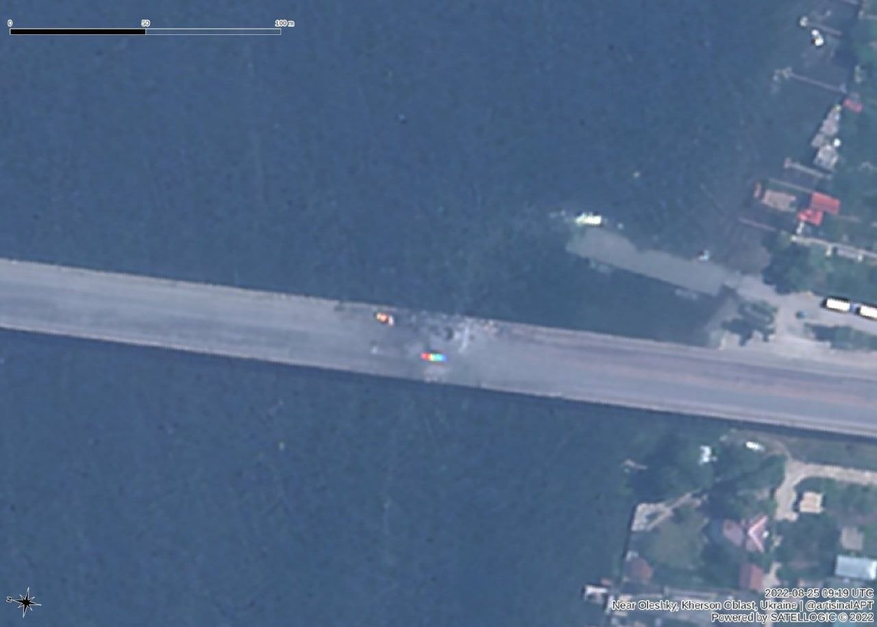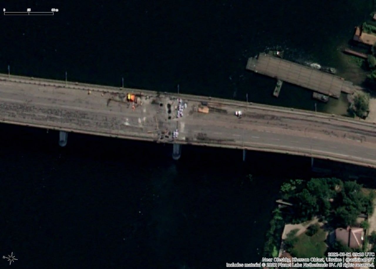 В понтонной переправе, наверное, пока смысла нет, мост продолжает работать для военных, гражданские на пароме. Понтоны в готовности (с ним не спешат, они для HIMARS как раз настоящая цель). |