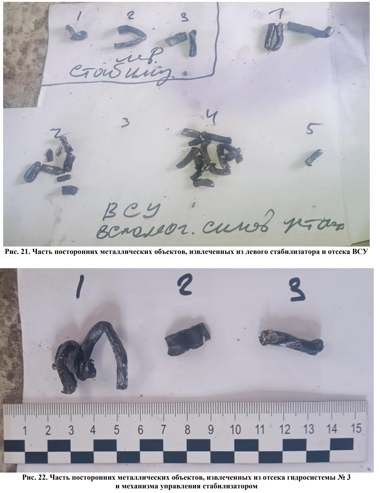 Коммерсант пишет "При этом, как сообщили источники "Ъ", российская сторона до сих пор не получила упомянутые в отчете "посторонние металлические объекты" для проведения экспертиз и установления источника их происхождения." |