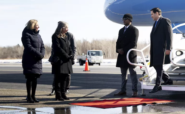 Приехавшему в Канаду госсекретарю США Марко Рубио во время встречи расстелили короткую красную дорожку, намекнув на враждебный прием на саммите глав МИД G7, пишет The Mirror US. Как видно на фото, очень короткая красная дорожка перед трапом самолета, с которого сходит Рубио, даже не закрывает лужу, перед которой она постелена. "Рубио, вероятно, встретят не слишком тепло на встрече министров иностранных дел G7 на этой неделе, на что намекает небольшая красная дорожка, расстеленная по его прибытии", — говорится в публикации. Как отмечает издание, подобный жест можно расценить как намек на нынешнюю напряженность между двумя странами. Фото этого половичка: |