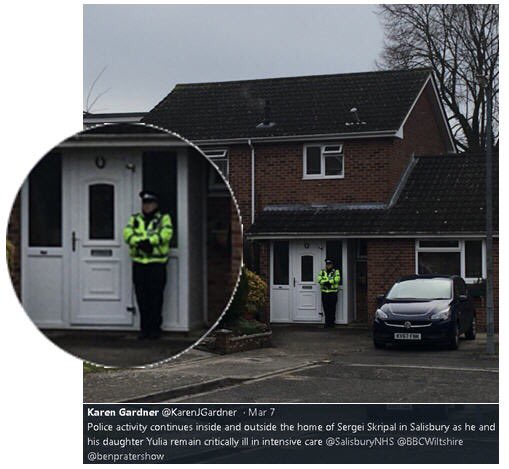 Интернетики пишут, что спустя 3 недели сыщики нашли следы газа Новичек на дверной ручке дома скрипалей. Входная дверь снята и увезена на экспертизу. То есть злодей помазал (?) ручку, те выходя из дома захлопнули дверь и пошли помирать через 4 часа... Верим ?? И что делать с констеблями, что стояли там всё время ? |