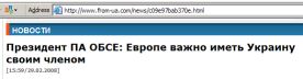 Меня веселит, что рупоры неполживых западных СМИ о Мукачево молчат - как воды в рот набрали. Как наш самолет где-то типа рядом с чем-то пролетел - так сразу же вой на весь мир об "агрессивной российской военщине". Как в Москве пролилась слезинка тридвараса - так сразу же вой на весь мир о кровавом Путине и зажиме свобод. Как в РФ учения какие, в тысячах километров от Европы - так сразу же вой про "бряцанье железом и игру мускулами". А тут банда нацистов устроила перестрелку с полицией, а их собратья по разуму и нацизму угрожают властям и требуют арестов сотрудников МВД (и все это в нескольких десятках км. от границы с ЕС) - и ничего. Ни ВВС, ни Евроньюс, ни СНН - никто ничего не пишет. :) |