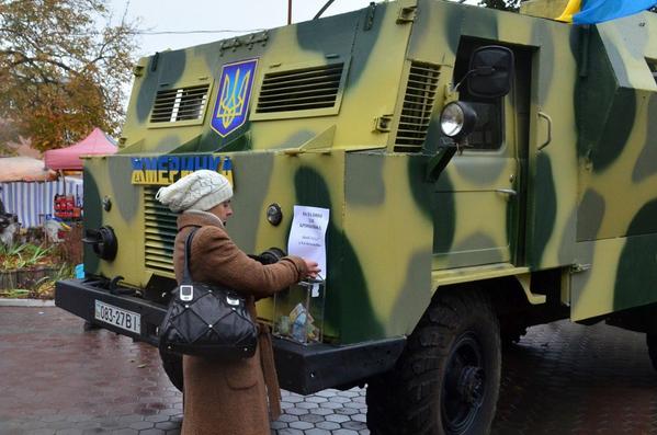 Очередной , . Тризуб и живтоблакит присутствуют. , что в доп. оснащение жмеринской вундервафли входит и ящик для сбора пожертвований. |